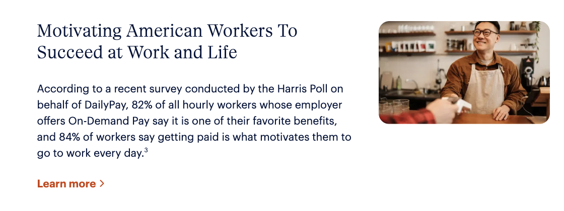 I lead brand voice and content strategy for the category leader in earned wage access. The work: making financial wellness tools accessible and trustworthy for hourly workers and their employers.
